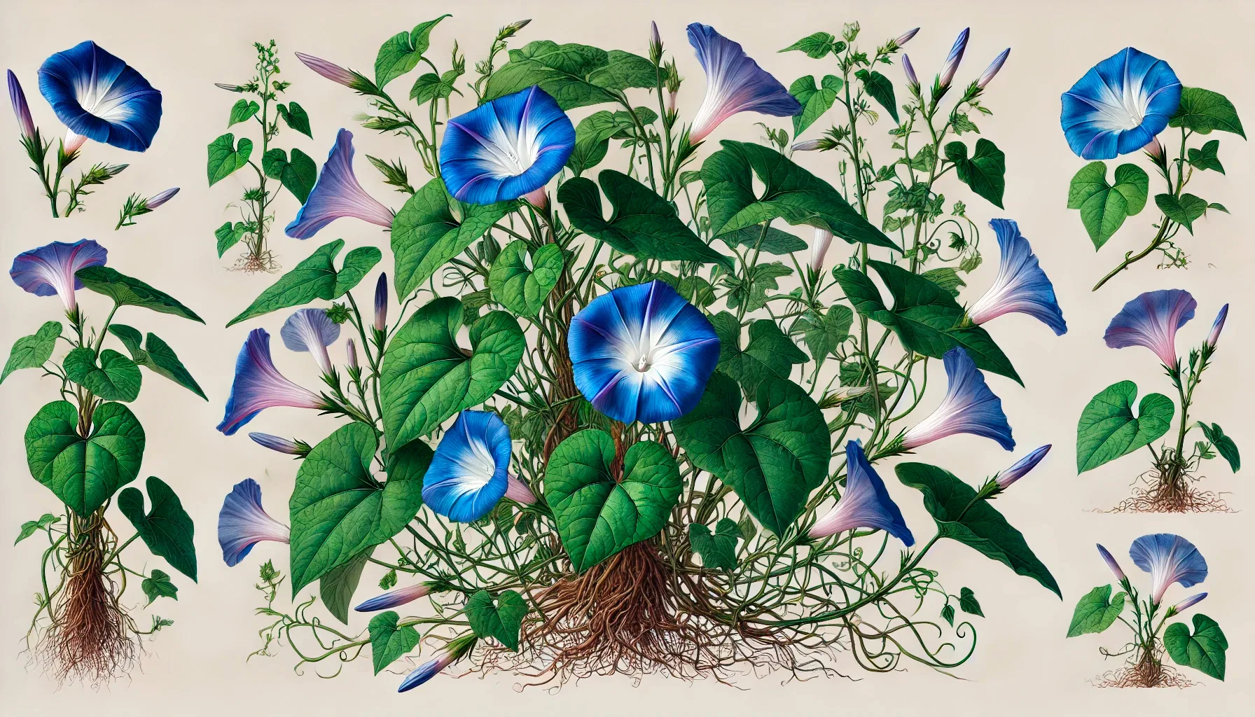 L‘Ipomoea tricolor è una specie di pianta da fiore della famiglia delle Convolvulaceae, comunemente conosciuta come Morning Glory. Questa vite rampicante è originaria dei tropici del Nuovo Mondo, ma è stata ampiamente coltivata in tutto il mondo per i suoi bellissimi fiori a forma di tromba, che spaziano dai blu e viola profondi ai bianchi e rossi vibranti. La pianta cresce tipicamente in modo rapido, raggiungendo lunghezze fino a 10 metri in condizioni ottimali. Le sue foglie sono a forma di cuore e i fiori si aprono prevalentemente al mattino, da cui il nome.